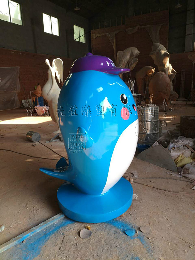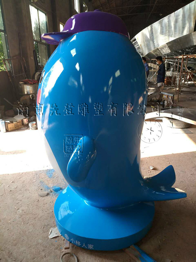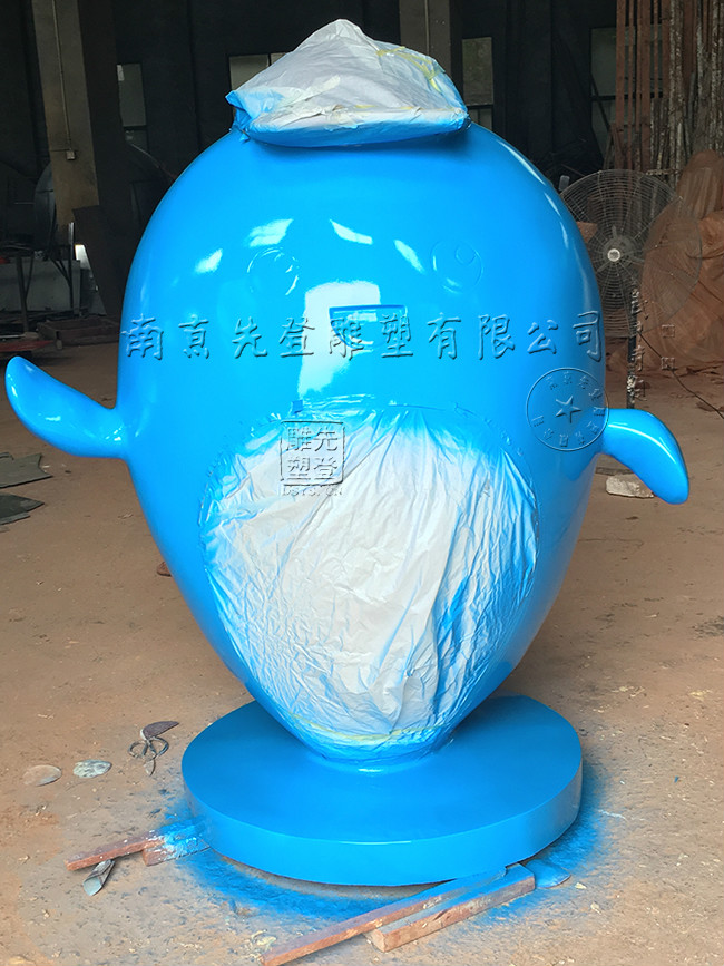 南京玻璃鋼大藍(lán)鯨彩繪雕塑噴漆中