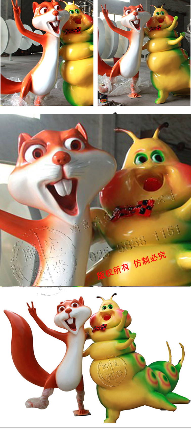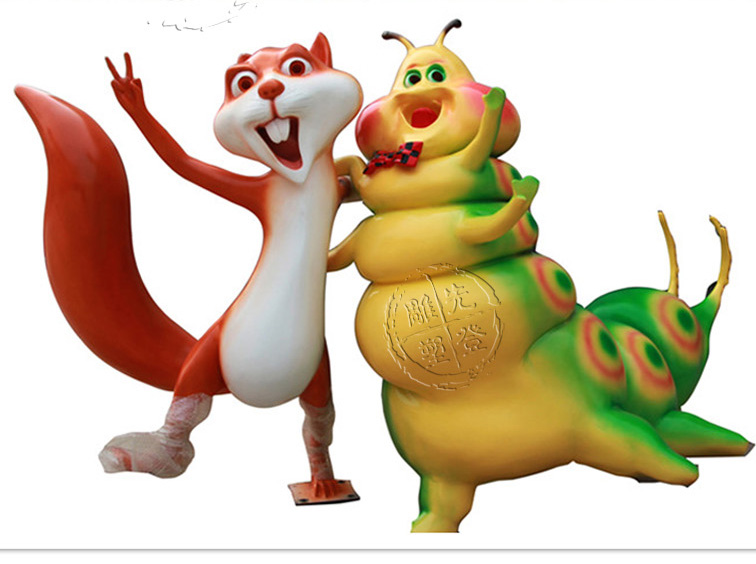彩繪雕塑玻璃鋼材質雕塑松鼠和毛毛蟲雕塑