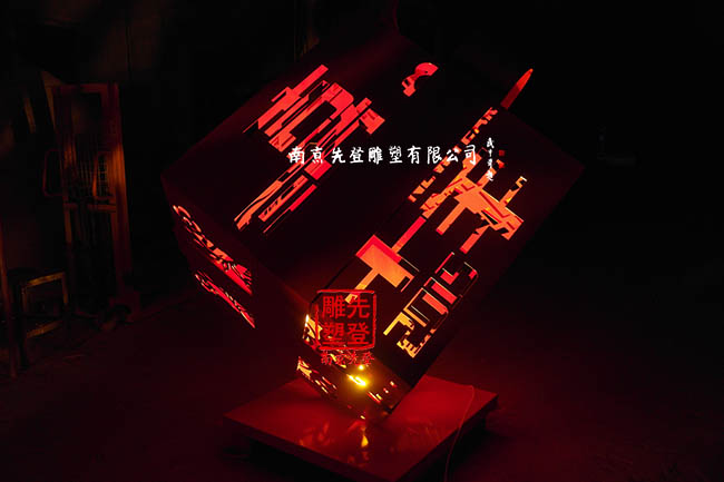 雕塑說明:燈光雕塑目前是一種流行的裝置藝術(shù),鏤空雕塑主要用于商業(yè)廣場(chǎng)點(diǎn)綴環(huán)境,活躍氛圍,把簡(jiǎn)單的不銹鋼雕塑融入彩色的燈光,烘托出濃濃的節(jié)日氛圍。